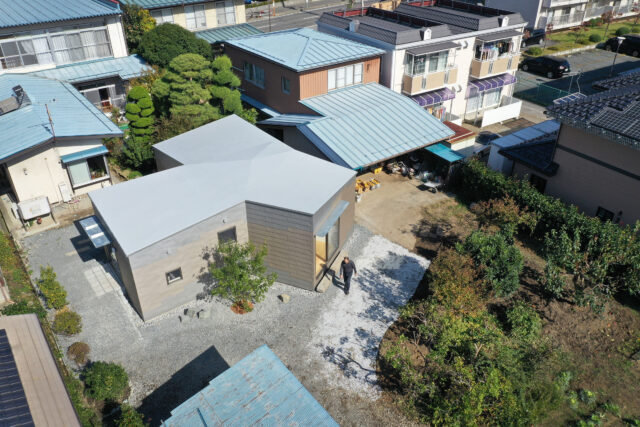 新婚の夫婦のためにつくった椅子、机、ソファーです。大きな机やソファーは現在の2人が住む家に搬入することが困難でした。また、将来引越しの際にも搬出が容易にできるほうがいいことが予想できます。そこで、椅子の座面、背板、机の天板、ソファーの座面、背板と脚が取り外せる家具を考えました。まず、 板材と脚のフレームそれぞれに凹凸を作ることで板がずれ落ちないようにしました。さらに強力な磁石をそれぞれの板に取り付け、脚と接続できるような仕組みになっています。磁石を用いることで、普段の生活では板材と脚が外れることはなく力を入れると外すことができます。栗集成材という荒々しさと美しさがある素材の角2箇所を曲面にすることで、優しい印象を持たせた板材。スチールを防錆塗装のライトグレーにし、華奢だが力強く支えている脚。これらの組み合わせにより、重量感がありつつ浮遊感もある重力のバランスを意識しました。そうすることで、主張しすぎず何気なく人に寄り添う家具をつくりました。