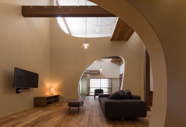 山本嘉寛建築設計事務所による、奈良・橿原市の「草臥の家」。戦前築の長屋を改修する計画。古い街並みの保存に寄与しつつ“実際に生活したい”施主の為に、スケルトンにした上で基礎の敷設や耐震補強なども実施。歴史を読み解いて“新しい住み方”との接点を探る設計も意識