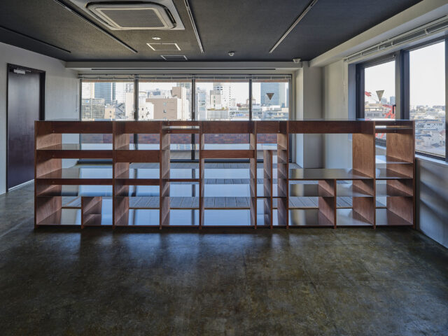 居住空間をワンルームにすることで起こりがちな問題のうちの一つに、水まわりや寝室といった生活拠点の場所をどのように作るかということがある。また、都内の狭小住宅で不足しがちな生活機能のための収納をどれくらい確保できるかということも居住性に大きく関わる課題である。そこで、それぞれ収納するものによって奥行きが異なるクローゼットを部屋全体にわたって設え、収納物固有の場所を作りながらそれ自体が生活機能に合わせて変形していくようにすることで、これらの問題を解決できるのではないかと考えた。