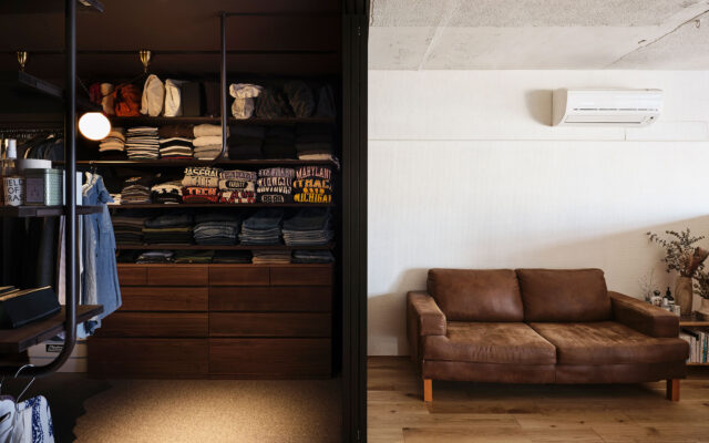 In addition, we set a walk-through closet (W.T.C.) beside the window, and installed a circulation plan that can go through around the L-shaped bearing wall. By opening the closet door, the living room and the bedroom can be converted into an individual room.