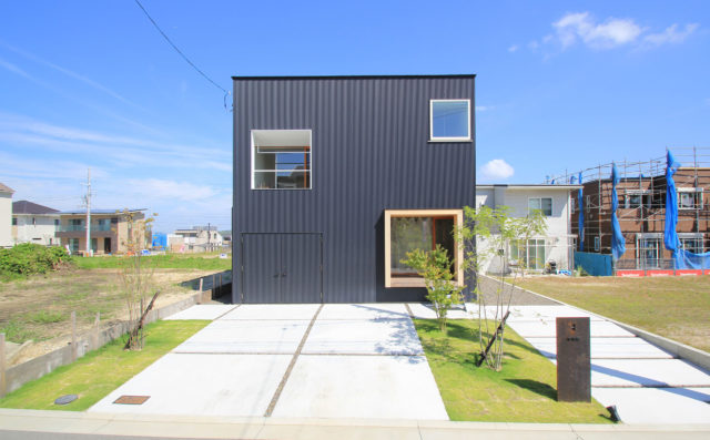 南の道路側と東の隣地側に大開口を設え、室内へ採光や風景を確保すると同時に町を行きかう人たちには額縁として、外部から内部の構造や空間、そこで行われる生活の情緒を感じてもらう役割も兼ねている。