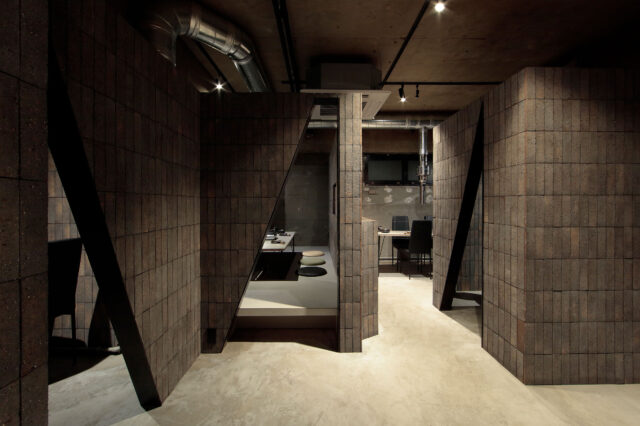 ここでは「通り土間」をその位置づけとして提案している。通り土間は2つの住戸が共用階段・廊下を挟み、土間を介して繋がることで構成されている。その構成の単位を2つ、コの字状にかみ合わせ、2本の通り土間が東西に貫通する計画とした。