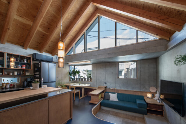 通り土間は、間口が狭く奥行の深い敷地に密度高く建つ集合住宅に対し、光と風を誘い、都市に対して段階的に接続するための場所となる。高密度集合住宅が通り土間を抱えることで、鬱屈さと閉塞感から解放され、都市生活における固有の居心地の良さを生み出すものと考えている。