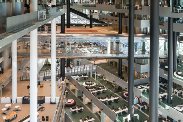 デイビッド・チッパーフィールドが2018年に完成させた、ドイツ・ベルリンの「ジェームズ・サイモン・ギャラリー」です。ベルリン博物館島の5つの施設を連結する機能も担う施設との事。こちらに日本語で同施設を紹介する記事があります。チッパーフィールドの公式サイトでも写真や図面を見ることができます。