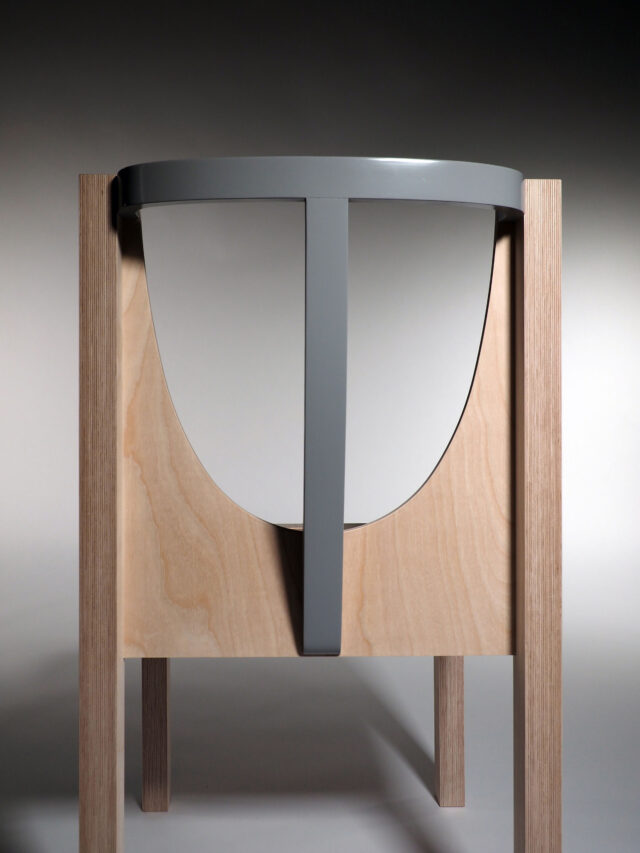 円弧という形状が椅子の座面に使用された例はあまり見たことがない。座り心地の問題など色々な理由から回避されている形状である。だが円弧に座ると、平面で作られた座面より、なぜか包まれた感じがして意外に心地がよい。さらにそれを浮かせると、今までにない座り心地になる。浮遊感を感じるためには、できるだけ薄い素材で作らなければいけない。スチールで製作することは安易だが、椅子自体が非常に重くなる。到底一人では運べない。二人でもかなり大変である。アルミを使用することで、スチールに比べて重さは3分の1となる。だが、アルミはスチールに比べ柔らかい素材であるから、そう簡単には構造的に成り立たない。どこまで薄いアルミでこの形状を作れるか?意外に難題であった。