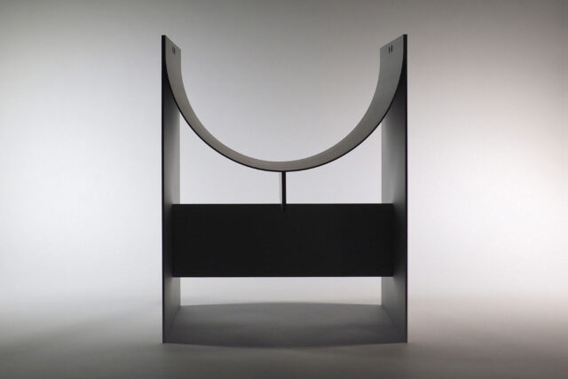 A circular arc is a traditional geometric shape, but it is not usually used for a seat chair because of the lack of usual comfortability. But a circular arc shaped seat gives you feeling as if you were enveloped. And also if a very thin seat of a circular arc is suspended in the air, you will feel something unlike any you had ever experienced before.