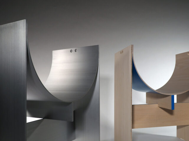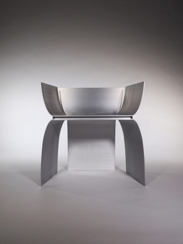 前作の「Shades of Michelangelo」に続き、(株)菊川工業の協力のもと、制作を続けているアルミニウムを使用した実験家具である。