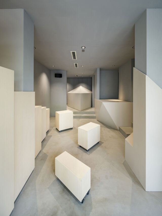 ファッションブランド、ミナ ペルホネンの新たな直営店として代官山ヒルサイドテラスにオープンした、ミナ ペルホネン ネウトラーリの内装計画。隣地の庭を望む、間口5.4m、奥行き10.8mの矩形の空間が敷地となった。“ネウトラーリ”はフィンランド語で“ニュートラル”を意味し、ミナ ペルホネンが考える“ニュートラル”という視点から新たにつくられた、コレクションラインと合わせやすいシンプルなアイテムを販売する。
