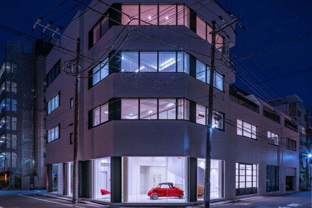 竹中工務店が設計施工した、大阪の、一階駐車場が屋上に連続しそのまま内部空間を包み込んだような意匠が特徴的な店舗「トヨタカローラ新大阪名神茨木店」の写真と図面が22枚、archdailyに掲載されています。