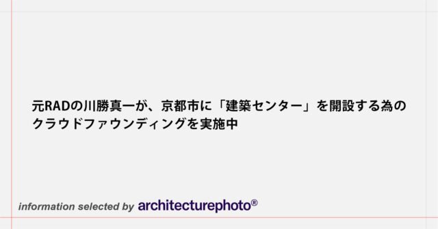 2024.4.02Tue元RADの川勝真一が、京都市に「建築センター」を開設する為のクラウドファウンディングを実施中