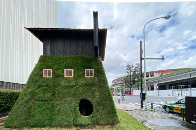 藤森照信は、日本を代表する建築史家であるとともに、45歳で建築家としてデビューした異色の存在です。代表作に「ラ コリーナ近江八幡」の「草屋根」、「銅屋根」、「多治見市モザイクタイルミュージアム」などがあります。新国立競技場の斜向かいに建つ茶室「五庵」は、これまで藤森が数多く作ってきた茶室の最新作です。茶室制作: 川本英樹(川本家具製作研究所)