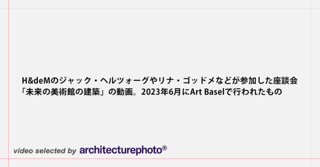 ヘルツォーグ&ド・ムーロンのジャック・ヘルツォーグ、タチアナ・ビルバオ、ベカ&ルモワンヌによる鼎談「空間がもつ感情的な力」の動画です。2023年5月17日にヴェネチアで行われたもの。