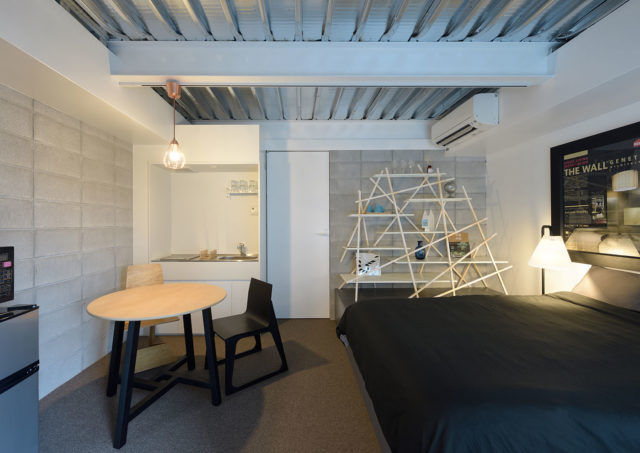稲妻形のフレームによって空間に偏りを生み出す。視認性の良さがワンルームの単純さと開放感を担保しつつも、このフレームがその中に溜まりや複雑さを作り出す。人々は、移動するたびにどんどん変わる風景に次第に自ら入り込む。