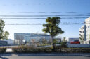 今治店(2017)や新居浜店(2020)の計画時から、いずれ本店を建替えるときいていたので約7年かけて実現したプロジェクトである。敷地は空港と松山市内を結ぶ空港通りに面し、業務施設を中心に多様な用途が立地する準工業地域で、交通量が多い上に緑やオープンエリアが少なく、立ち寄りにくいエリアであった。