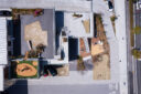 矢野青山建築設計事務所による、愛媛・松山市の「だんだんPARK」。カーディーラーの建替計画。自動車を取巻く“環境の変化”に向き合い、用途の提案まで行って多目的ホール等を内包する“公共的な場”を志向。様々な用途の入る“5つのBOX”がズレながら重なる構成の建築とする俯瞰、敷地上空より見下ろす。 photo©西川公朗