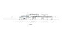 矢野青山建築設計事務所による、愛媛・松山市の「だんだんPARK」。カーディーラーの建替計画。自動車を取巻く“環境の変化”に向き合い、用途の提案まで行って多目的ホール等を内包する“公共的な場”を志向。様々な用途の入る“5つのBOX”がズレながら重なる構成の建築とする東側立面図、断面図 image©矢野青山建築設計事務所