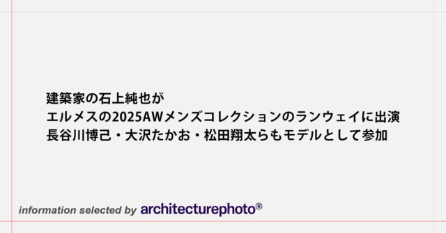建築家の石上純也が、エルメスの2025AWメンズコレクションのランウェイに出演。長谷川博己・大沢たかお・松田翔太らもモデルとして参加