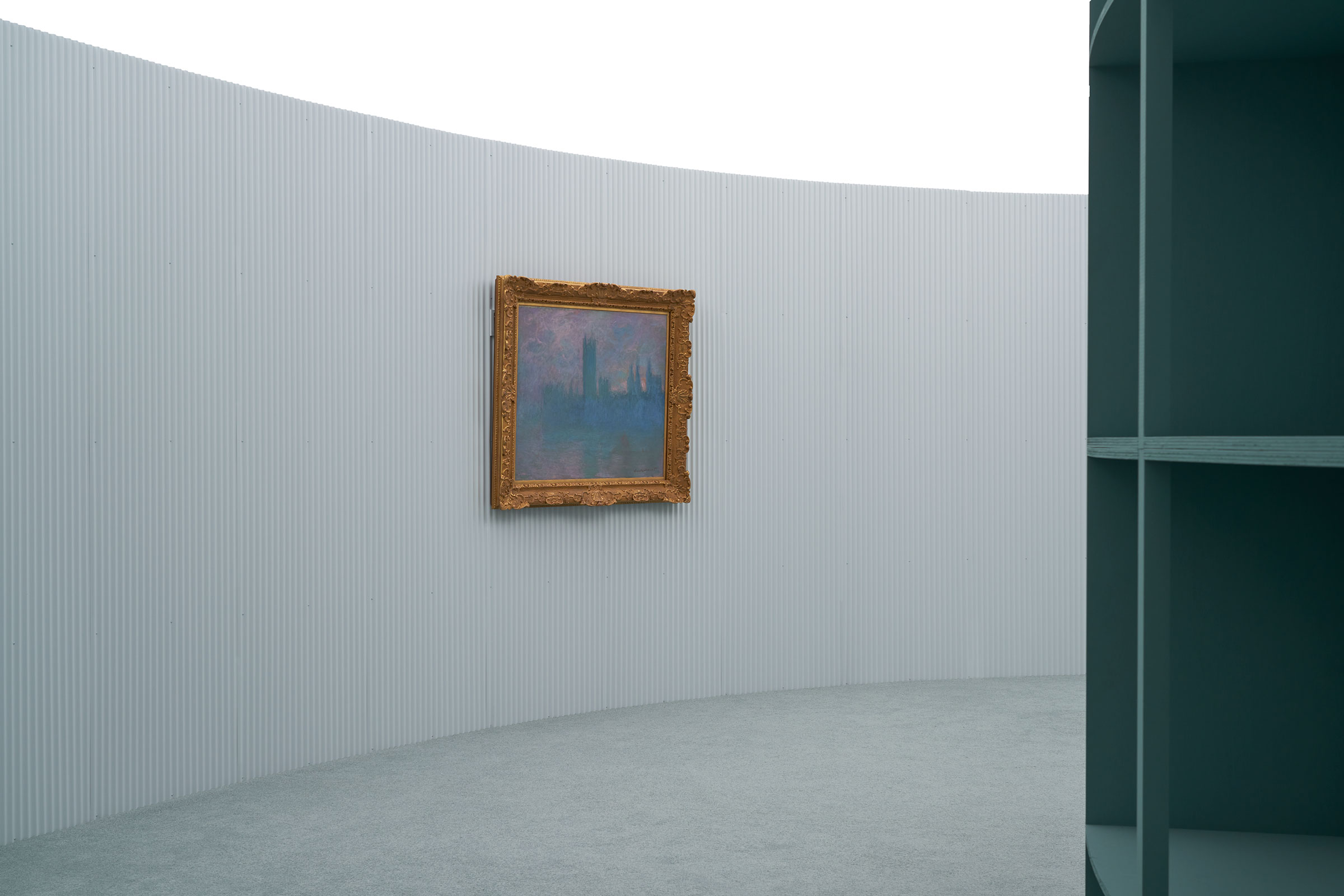 中山英之による、ポーラ美術館でのモネの展覧会「モネ-光のなかに 会場構成:中山英之」の写真と、中山によるコンセプト解説。モネの絵画を見るための光の質を現代技術で追求