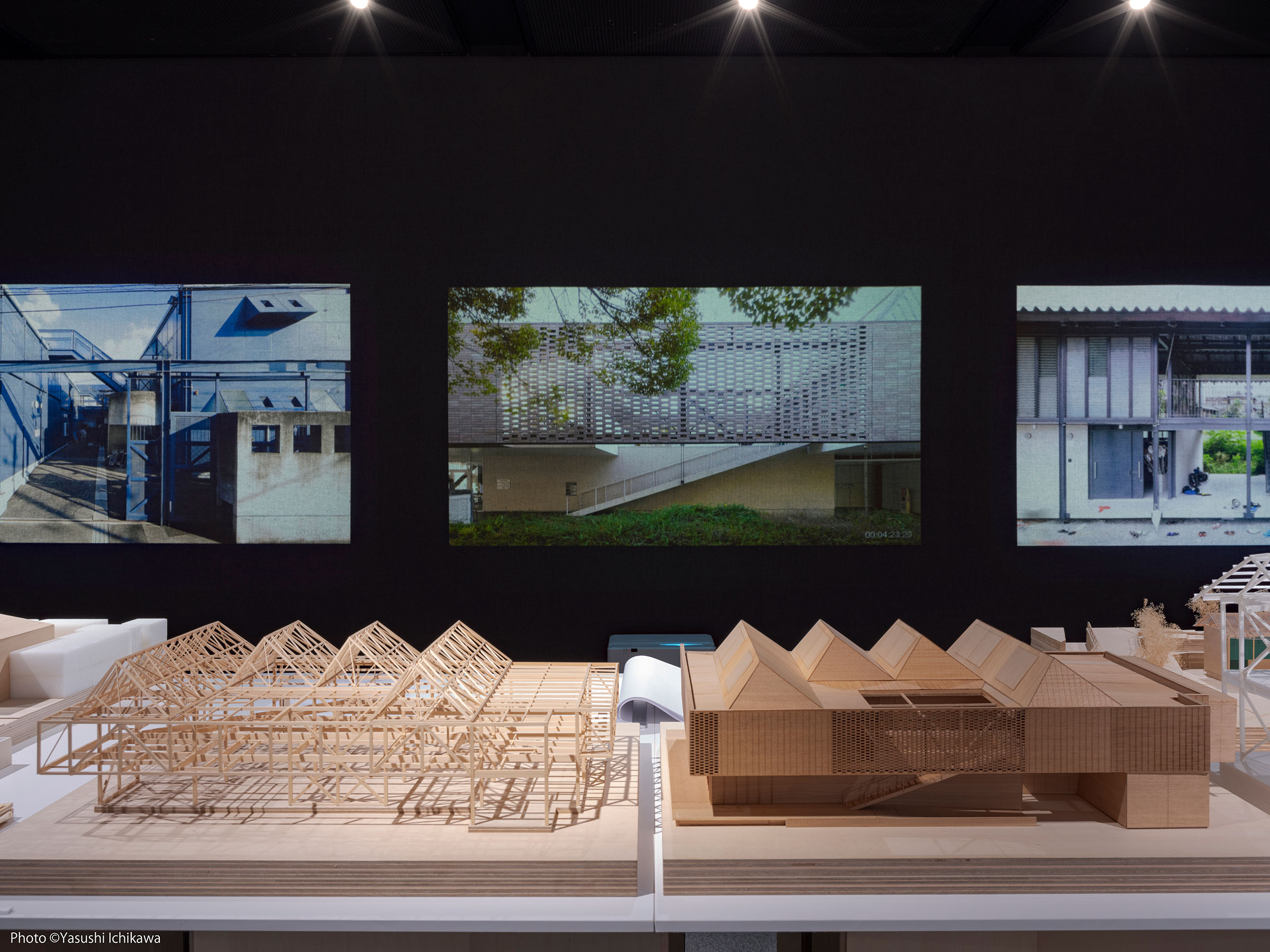 岸和郎の、進行中のプロジェクトまでを含む回顧展「時間の真実_TIME WILL TELL」の会場写真。現代のモダニストとして京都と向き合い建築を作り続けた約40年を振り返る展覧会