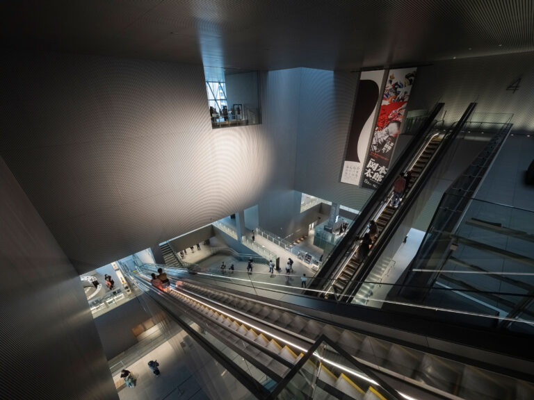 エリアの“結節点”と言える敷地に計画されました。建築家は、人の流れ・公共的利用・浸水リスクを考慮し、周辺と連続し都市に開かれた“地形”の上に明快な幾何学の“建築”が浮かぶ構成を考案しました。そして、内部の“立体的なパッサージュ”は新しい都市体験を提供が意図されました。施設の公式サイトはこちら。