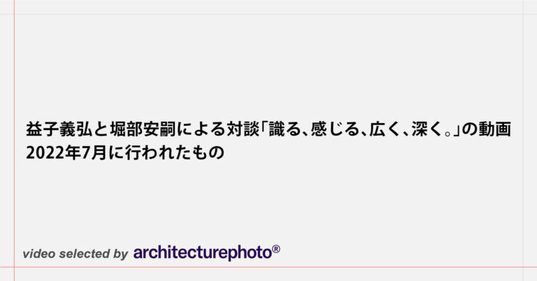 益子義弘と堀部安嗣の、2022年7月に行われた対談「識る、感じる、広く、深く。」の動画です。