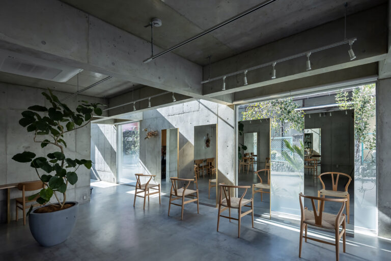 閑静な住宅街に計画されました。建築家は、北向き敷地でも“自然が感じられる”建築を求め、外部との距離感をつくり光と風を取り込む“スリット状の庭”を考案しました。また、“防火上必要な技術基準”に適合させ“木質空間”も作る事も意図されました。