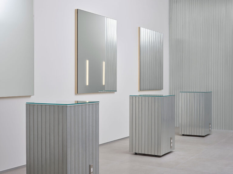 田﨑敦士 / Atsushi Tasaki Architecture and Designによる、神奈川・藤沢市の美容室「NEON」。メーカー住宅の1階に計画。設計者自身の原風景でもある“工業化”に向き合い、スタッド製什器等の流通建材を“少しずれた”方法で用いる設計を志向。今ある風景に寄添いながらも“以前とは異なる風景”を生み出す"Untitled (The Hair Salon in Kugenuma #220)", 2022 ©︎ Gottingham Image courtesy of ATAAD and Studio Xxingham photo©Gottingham