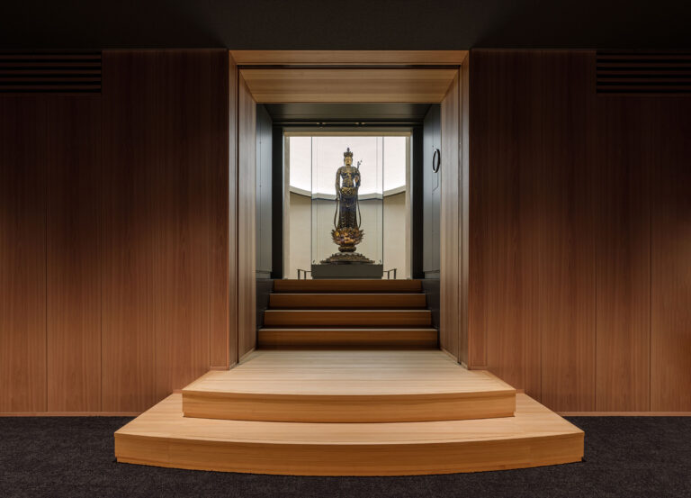 サービス棟とダイニング棟の間は小さな玄関となっていて、その北側は駐車場からアプローチできる勝手口と対面する形となっている。サービス棟は洗面脱衣室が玄関と直結していて、プールに入るゲストが直ぐに着替えられるように配慮している。その奥にはサウナ付きの大きなバスルームがあり、バスルームから直接プールサイドに出ることができる。