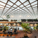 ファラによる、ポルトガル・ポルトの住宅「house of many faces」。事務所と倉庫だった二つの建物を家に改修する計画。ファサードの“黒い点のグリッド”で構造体を理解し易くして形状も定義。広大なリビングの中でキッチンとモニュメンタルな暖炉が“家庭的な性質”を示唆する photo©rory gardiner