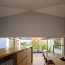 - 矢野青山建築設計事務所による、愛媛・大洲市の「あいわ苑」。就労支援と生活介護を行う多機能型事業所。景観条例・自然災害・安全性等の与件に対し、問題への応答に加えて“街に適切に開かれた”建築を志向。屋根形状と開口部の操作で“街との繋がり”を構築する
