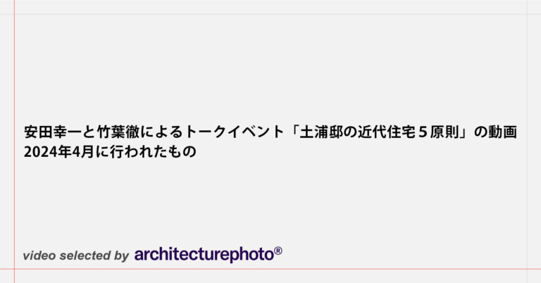 安田幸一と竹葉徹(編集者)によるトークイベント「土浦邸の近代住宅5原則」の動画です。2024年4月に行われたもの。