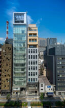 ギャラリーの機能も備えた蕎麦店の計画です。建築家は、“感性が豊かになる”様な空間を求め、芸術鑑賞と飲食を同時に行う為の“設えのバランス”を模索しました。また、間仕切りのガラスブロック積みは皇居の石垣や東京駅の煉瓦などの“組石”を引用しました。店舗の場所はこちら(Google Map)。