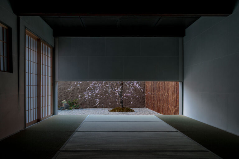 - 今津康夫 / ninkipen!による、大阪・羽曳野市の住宅「鉤の離れ」。施主の生家の傍らに建つ住まい。平面の形を“かぎ状”とし新たな植栽を施して、既存の庭を“新旧の二つの家を段階的に繋げる中庭”へと発展。内部では多様な樹種の材を不均一に使用して“たくましさ”を空間に付与
