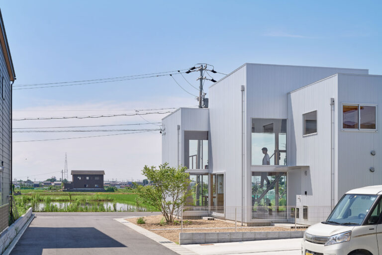 周辺環境は田園ののどかな風景と閑静な住宅街、更にはスクラップ工場や物流倉庫が建つ、多様性が混在した地域だった。そんな周囲環境をありのままに、大らかに受け入れ、そこに根付く生活の賑やかな様子も加えた新しい景色となる住宅をつくろうと思った。