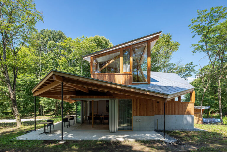 寄棟のボリュームは地表面の雪と屋根雪が繋がらないよう軒先を高くした。軒下空間は奥行を深くして堆雪と窓の間に空隙をつくり、堆雪の荷重により窓が破損すること防いでいる。