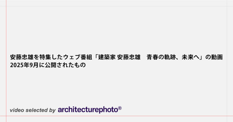 安藤忠雄を特集したウェブ番組「建築家 安藤忠雄 青春の軌跡、未来へ」の動画です。全国賃貸オーナーズフェスタの制作で2025年9月に公開されたもの。