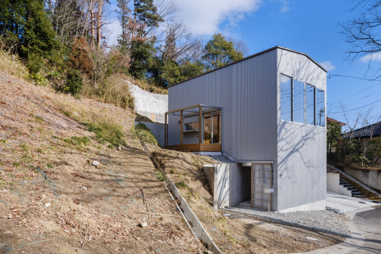 - 佐藤充 / SATO+ARCHITECTSによる、宮城・仙台市の「中山の家」。林縁の雛壇状に造成された敷地。擁壁を“副産物”ではなく“生活に寄り添う‘壁面’”と捉え、建築との“親密な関係”の構築を志向。擁壁を跨ぐように建築を配置して其々に暮らしに寄与する様々な役割を与える