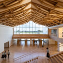 この屋根の下、学生たちが集い、演劇や音楽などの催しができる空間です。ギャラリーが開放的なのとは対照的に、こちらは、守られ、包み込まれるような空間になっています。