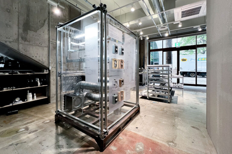 西原将 / スタジオパルマコンによる「『現し』を考える。展ver.4.0」。BRIDGEHEAD Shimbashiで開催。“現し”をテーマに床・壁・天井を考え、“電材の可能性”の一端を提示。一点物のものづくりとか異なる“作ることを開く”を求めて既製品の体系に“潜り込む”