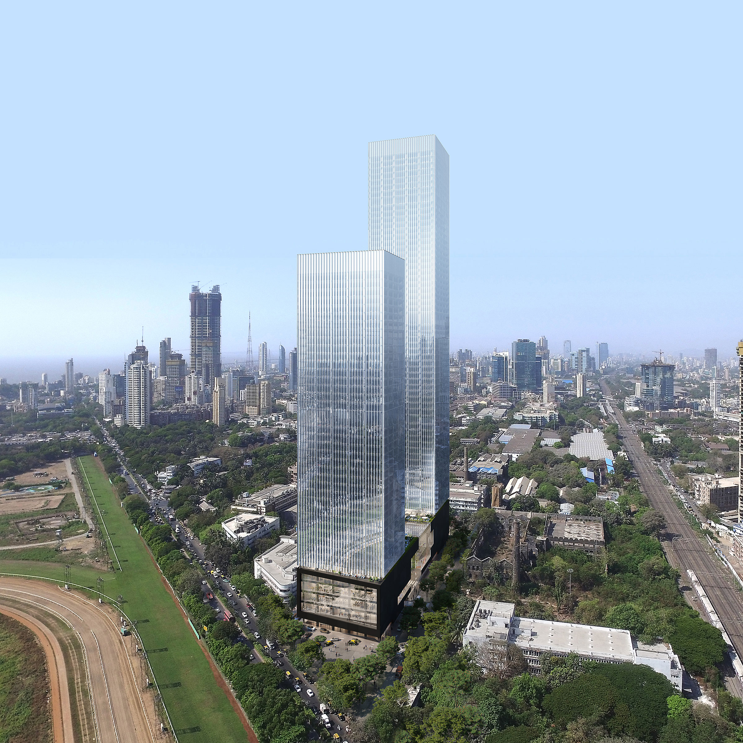 OMA / イヤド・アルサカの設計で着工した、インド・ムンバイの複合施設「Prestige Liberty Towers」。二つの高層オフィスタワーと基壇部の商業施設で構成され、2025年の完成を予定 SHAREarchitecture/feature