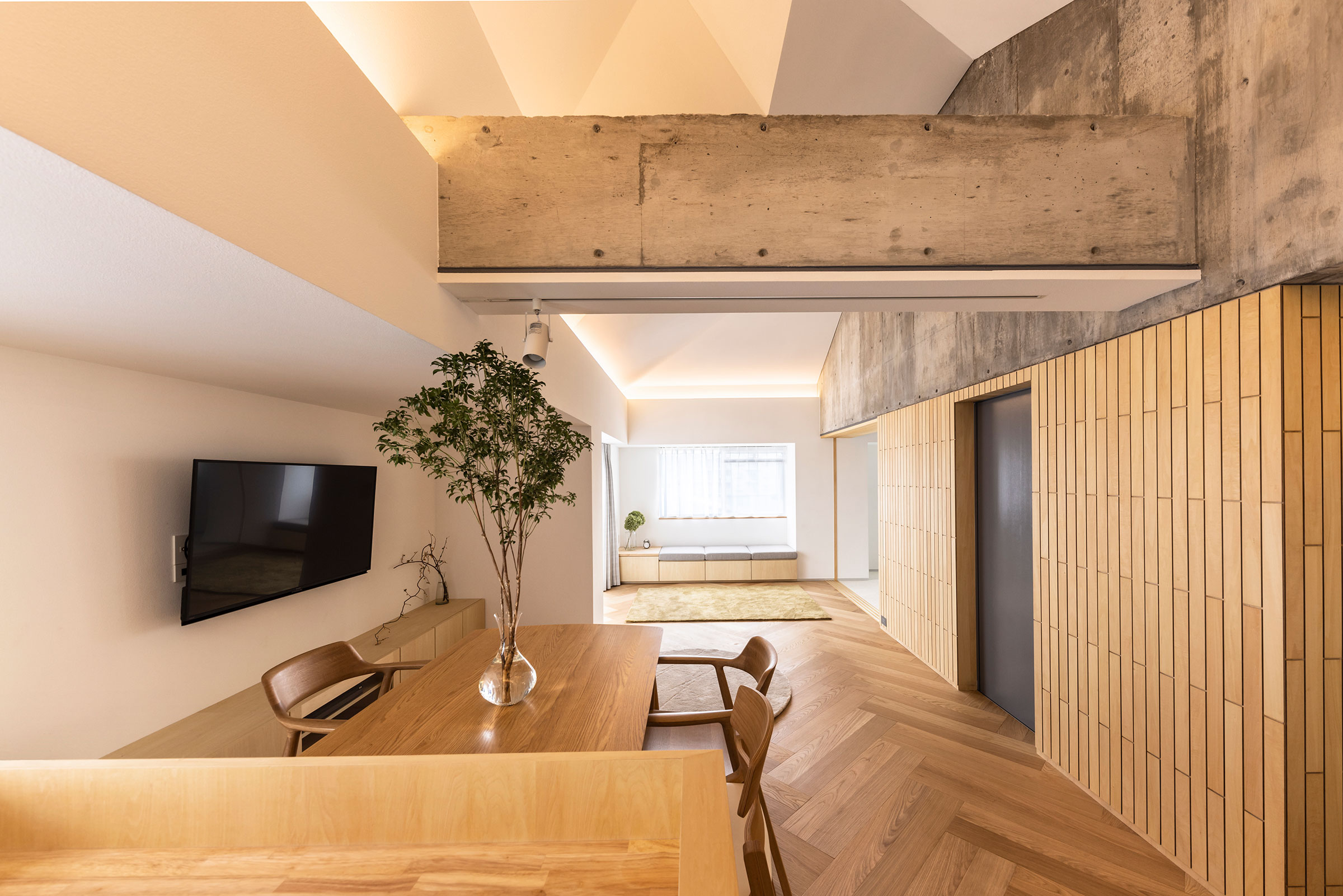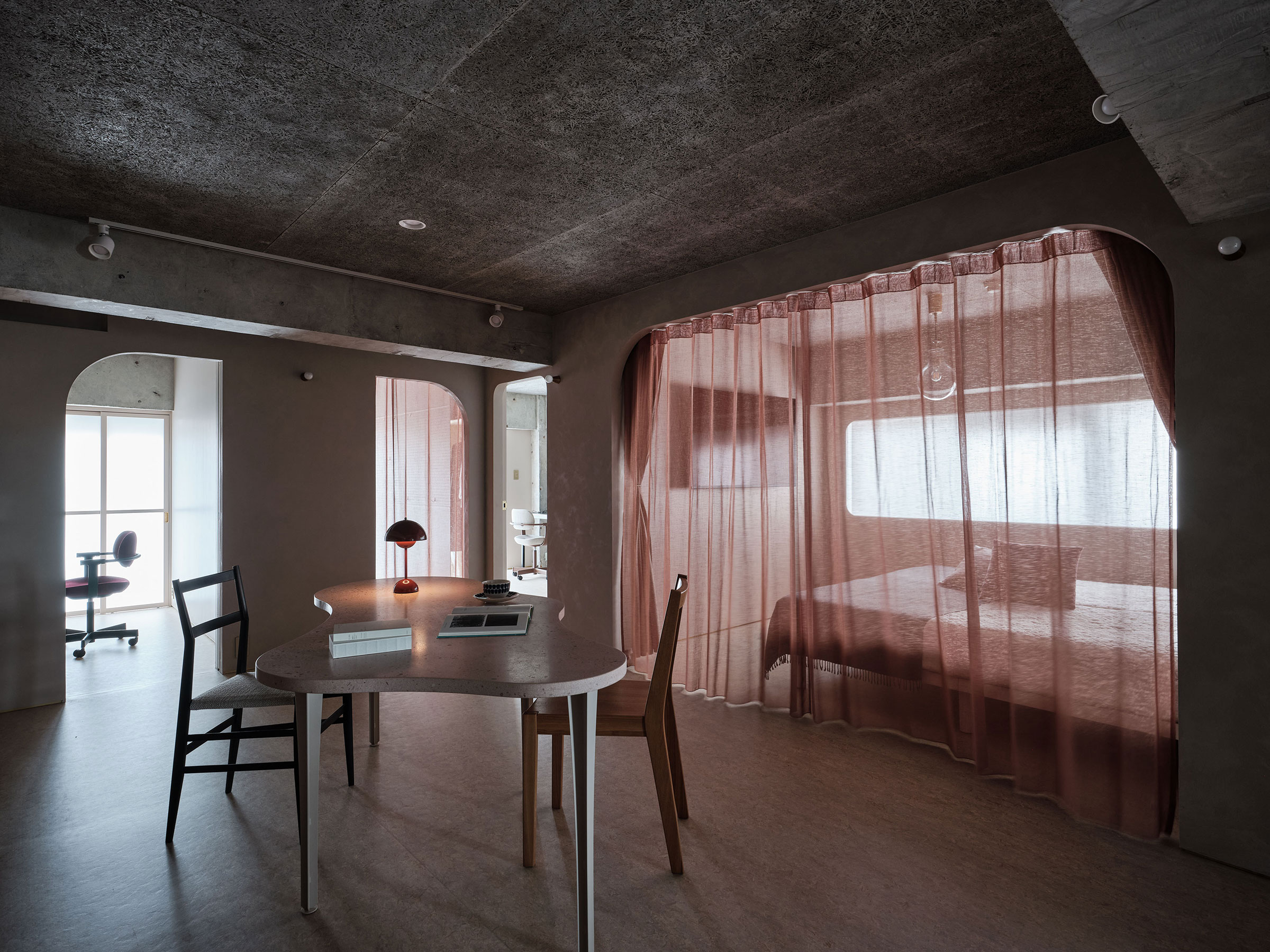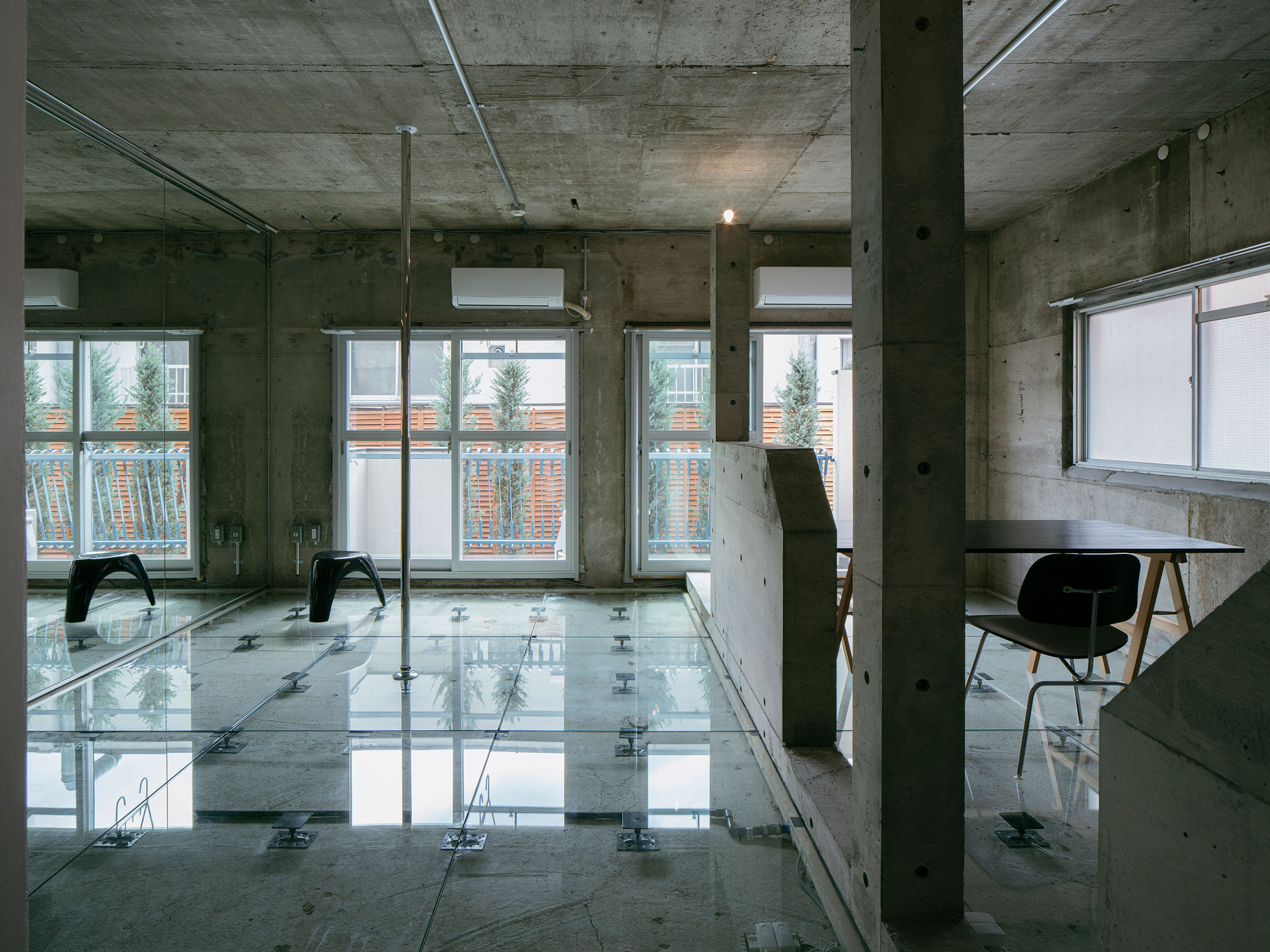 ファラによる、ポルトガル・ポルトの住戸改修「oasis under a building」。“穴の空いた靴下”のような“反転したガラスの家”。ひとつとも複数ともいえる空間で構成。天井は“明るい空”のように機能させる SHAREarchitecture/feature