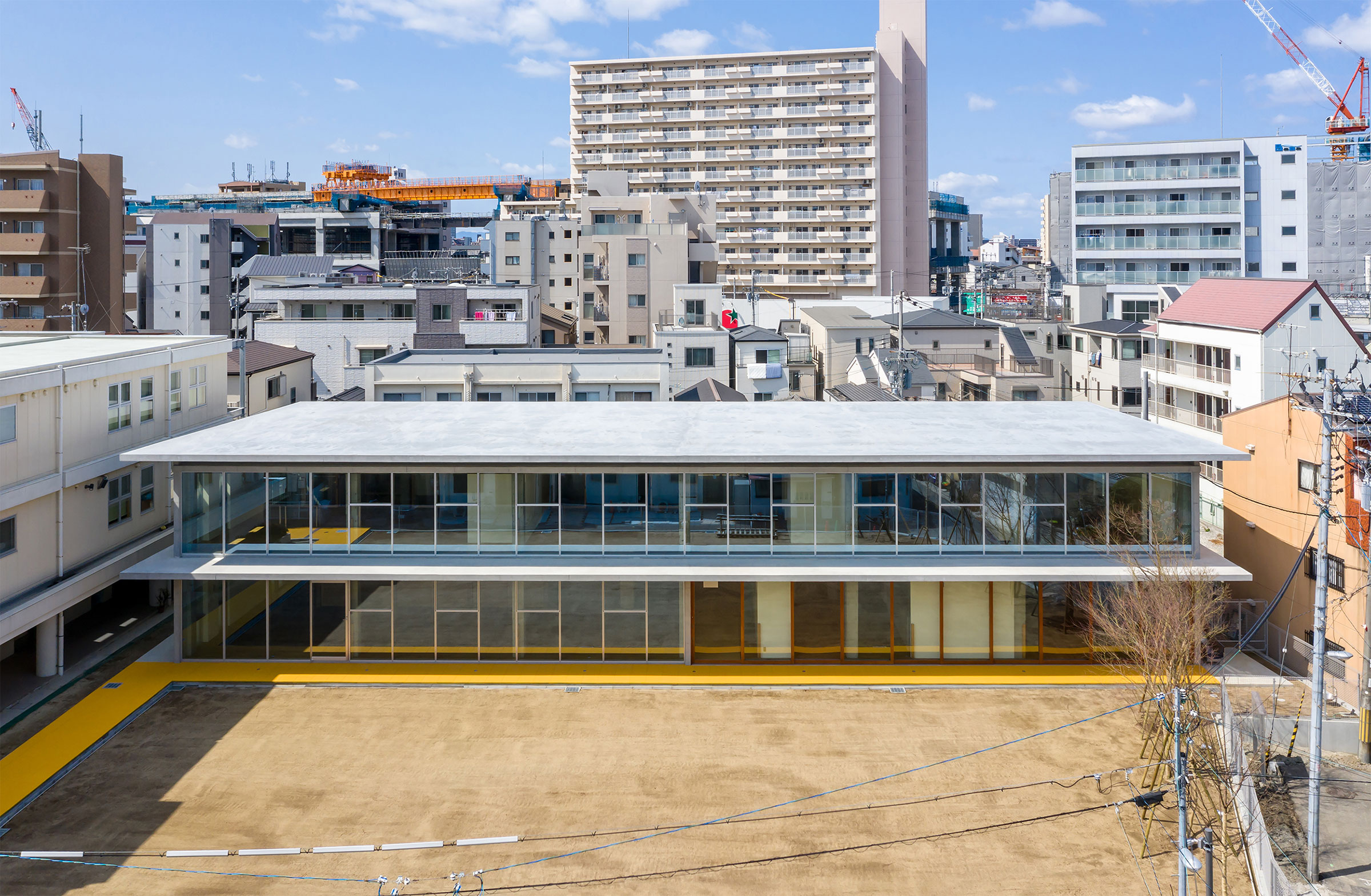 宇野享 / CAnによる、兵庫の「加東みらいこども園」。雄大な敷地に計画。子供達が走り回る姿を想像して、大地に屋根だけが浮かぶ様な開放的な建築を志向。機能毎の分棟での合理性確保と性格の異なる庭での創造性喚起も意図 SHAREarchitecture/feature