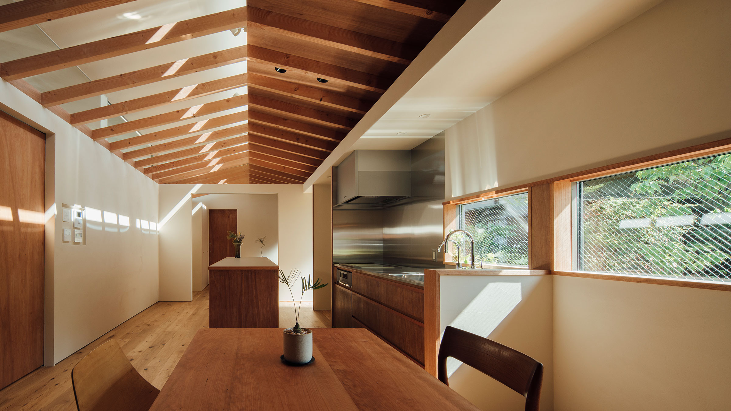 中本尋之 / FATHOMによる、広島・東広島市の「金光酒造 蔵元販売所」。 隣接の登録有形文化財である酒蔵の水平ラインを意識し踏襲しつつ、一部を隆起させたラインが特徴的な外観 SHAREarchitecture/feature