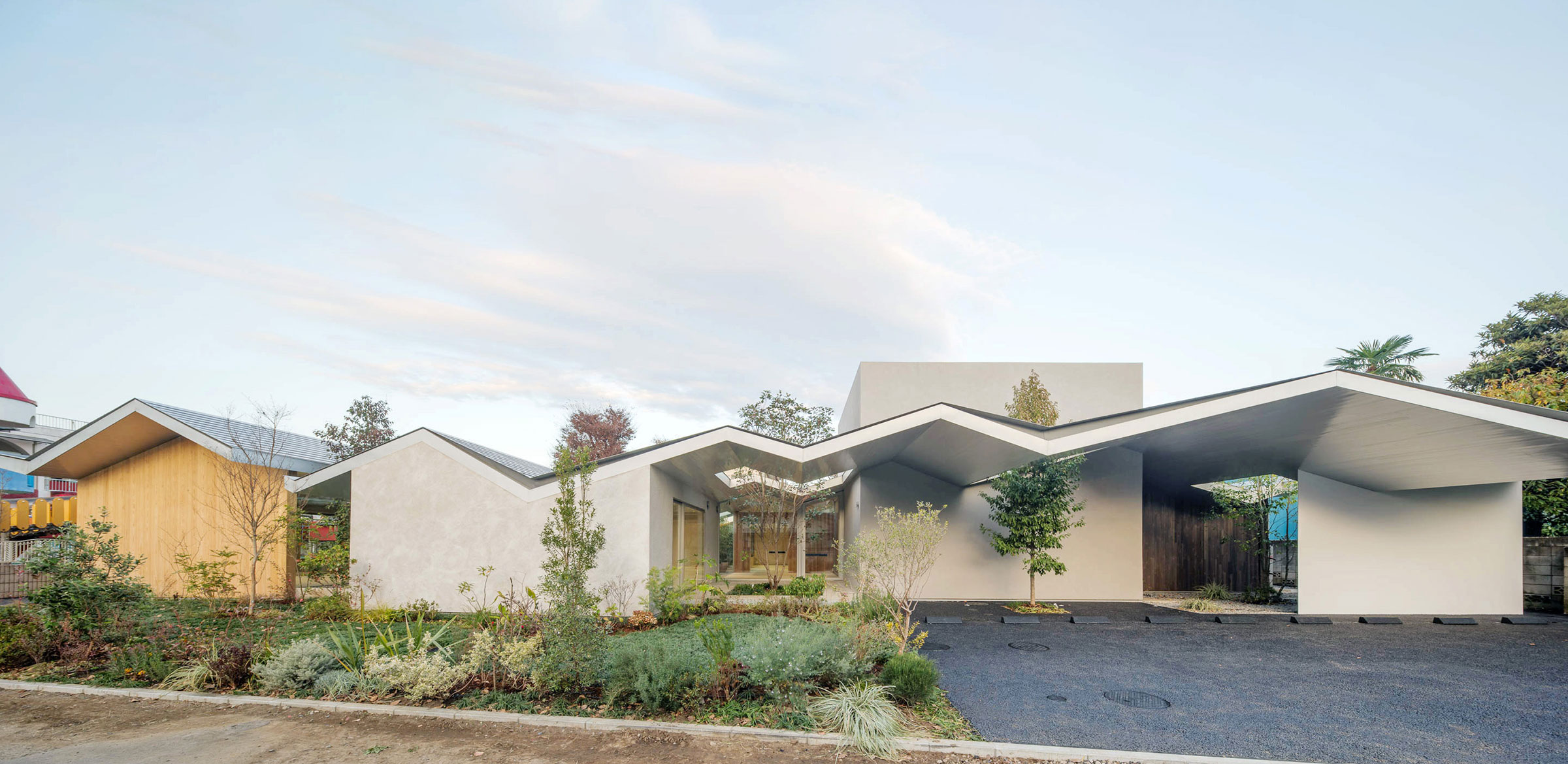 宇野享 / CAnによる、兵庫の「加東みらいこども園」。雄大な敷地に計画。子供達が走り回る姿を想像して、大地に屋根だけが浮かぶ様な開放的な建築を志向。機能毎の分棟での合理性確保と性格の異なる庭での創造性喚起も意図 SHAREarchitecture/feature