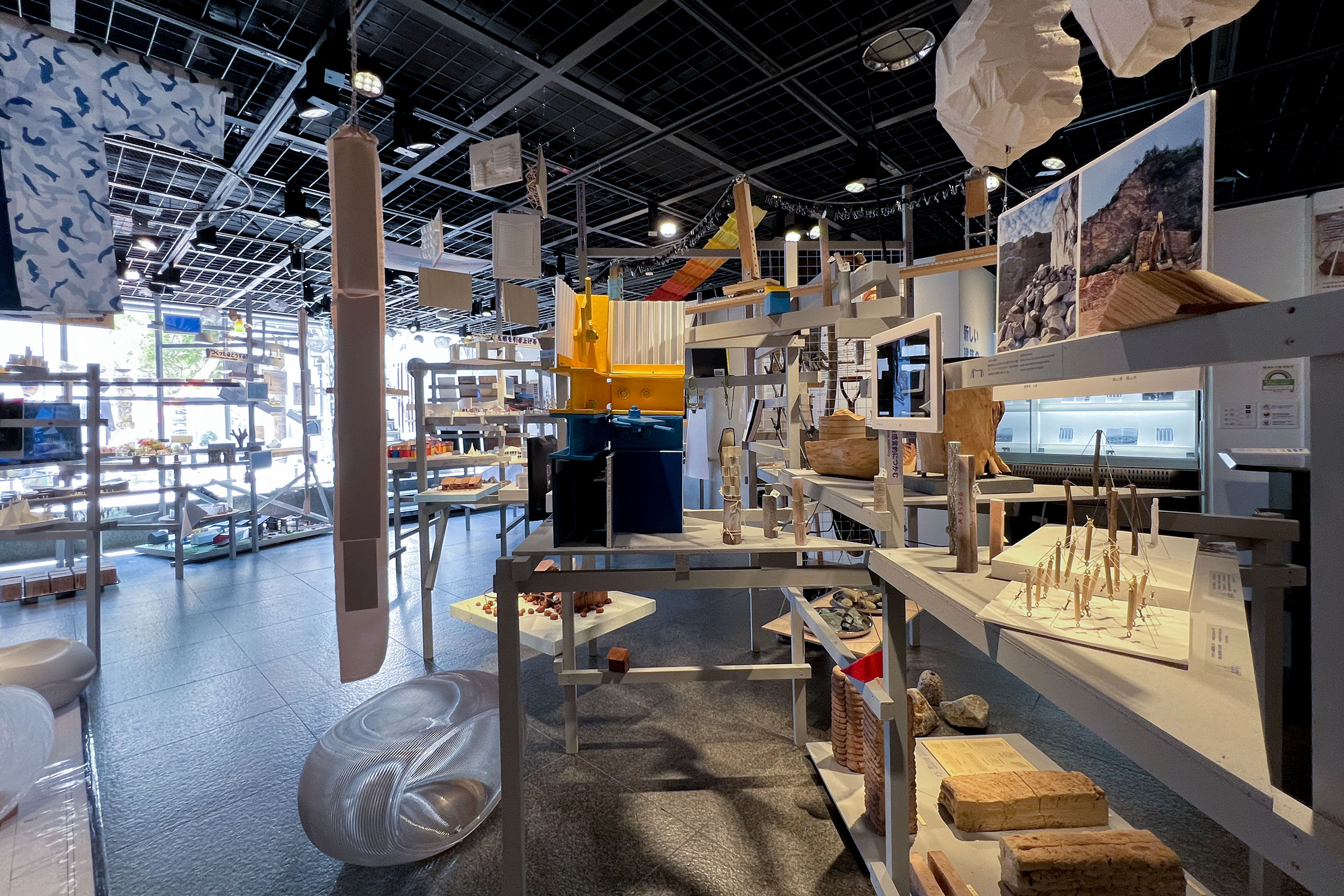 TOTOギャラリー・間での建築展「新しい建築の当事者たち」。大阪・関西万博の休憩所他設計プロポで選ばれた20組のグループ展。複雑な状況下での実現までの過程を、模型や資料を通じて紹介。様々な対話から生まれた“思考の結節点となるキーワード”も提示