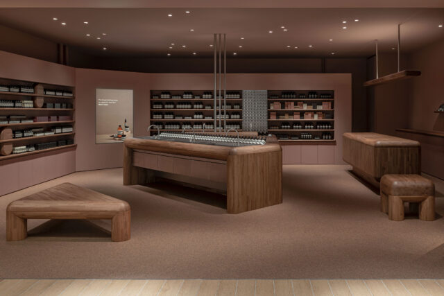 オーストラリアのスキンケアブランド イソップの、阪急うめだ本店の内装計画。同フロアの既存店舗が、より大きな区画へとリロケーションした。