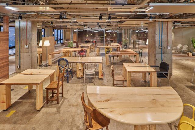 王子では路面店を構えていたが、イベントスペースの拡充を求め、池袋に移転することとなり、プロジェクトは始まった。資金面も限られていたためDIYで工事し、設計者である私を含め、王子店時代からの常連、アーティスト仲間を巻き込んで作られた。表通りに面した建物の2階にあり、時間帯によって入店方法が異なるテナントは外から全く見えず、事情により看板も出せない。本来、小売店として弱点となるこのような状況に、小規模であり、顧客に密着してきたコ本やにしかできないような形を目指し設計された。